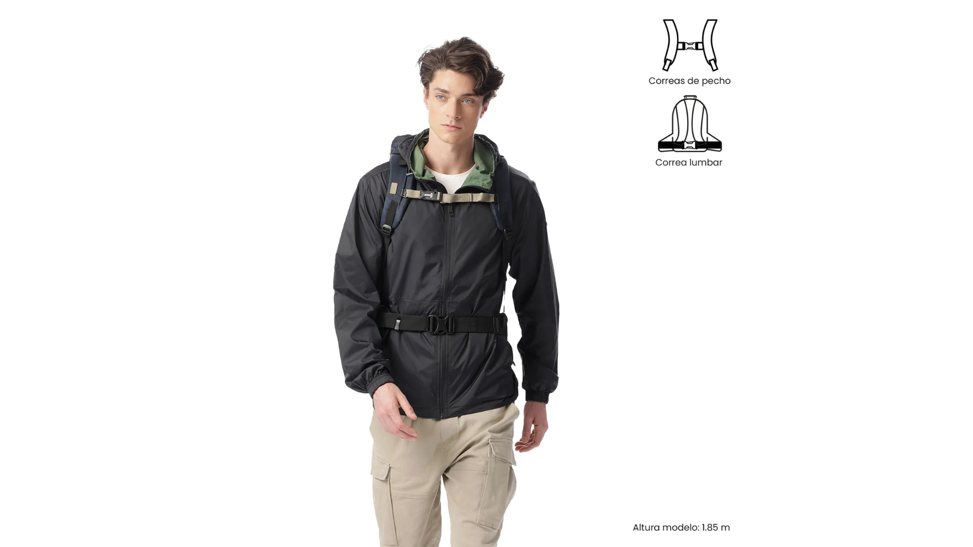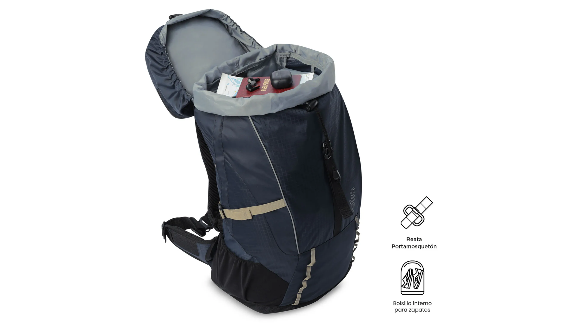 Material: Backpack Exterior: 60% Poliamida-40% Poliester Forro: 100% Poliester Raincover Exterior : 100% Poliester